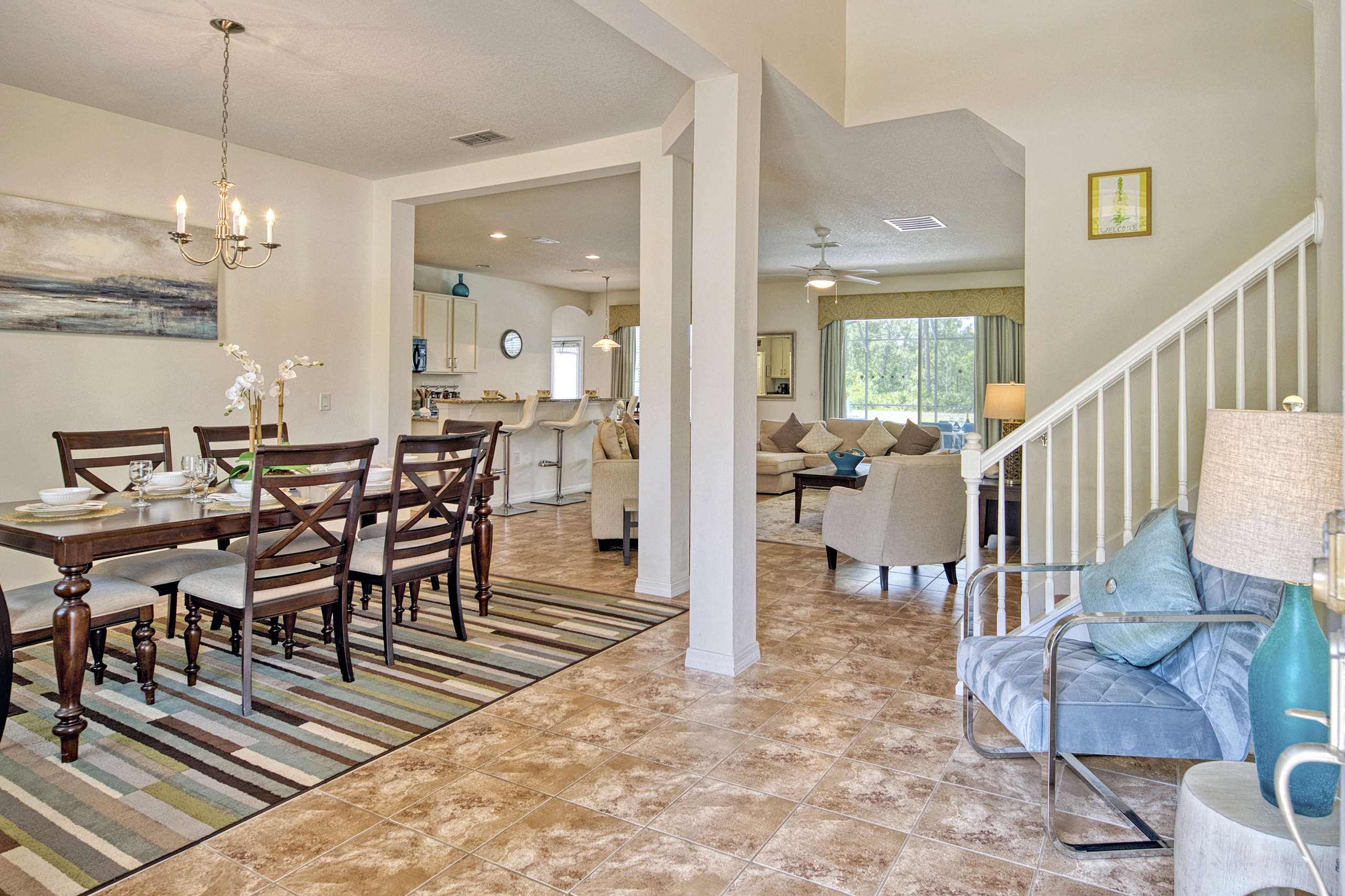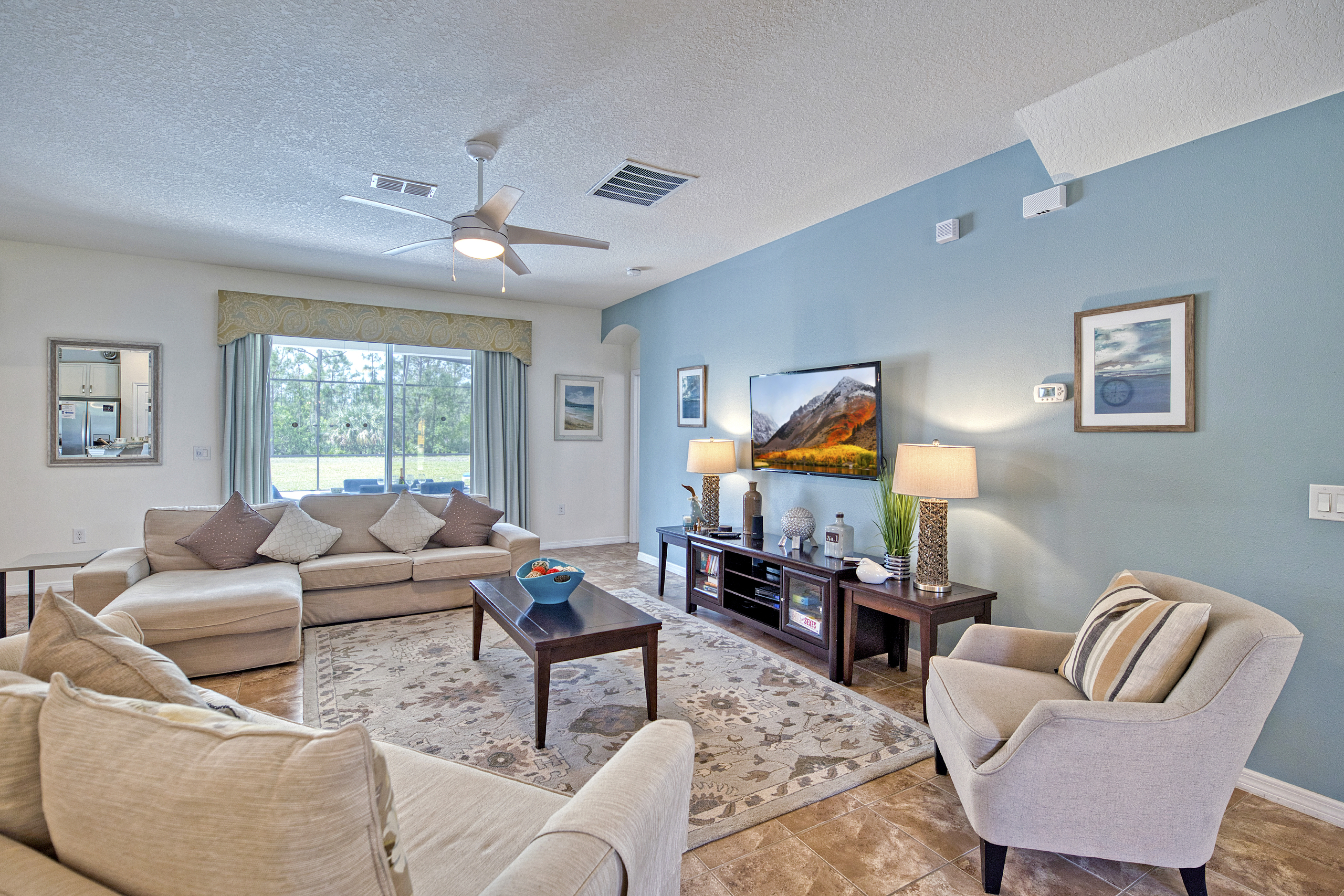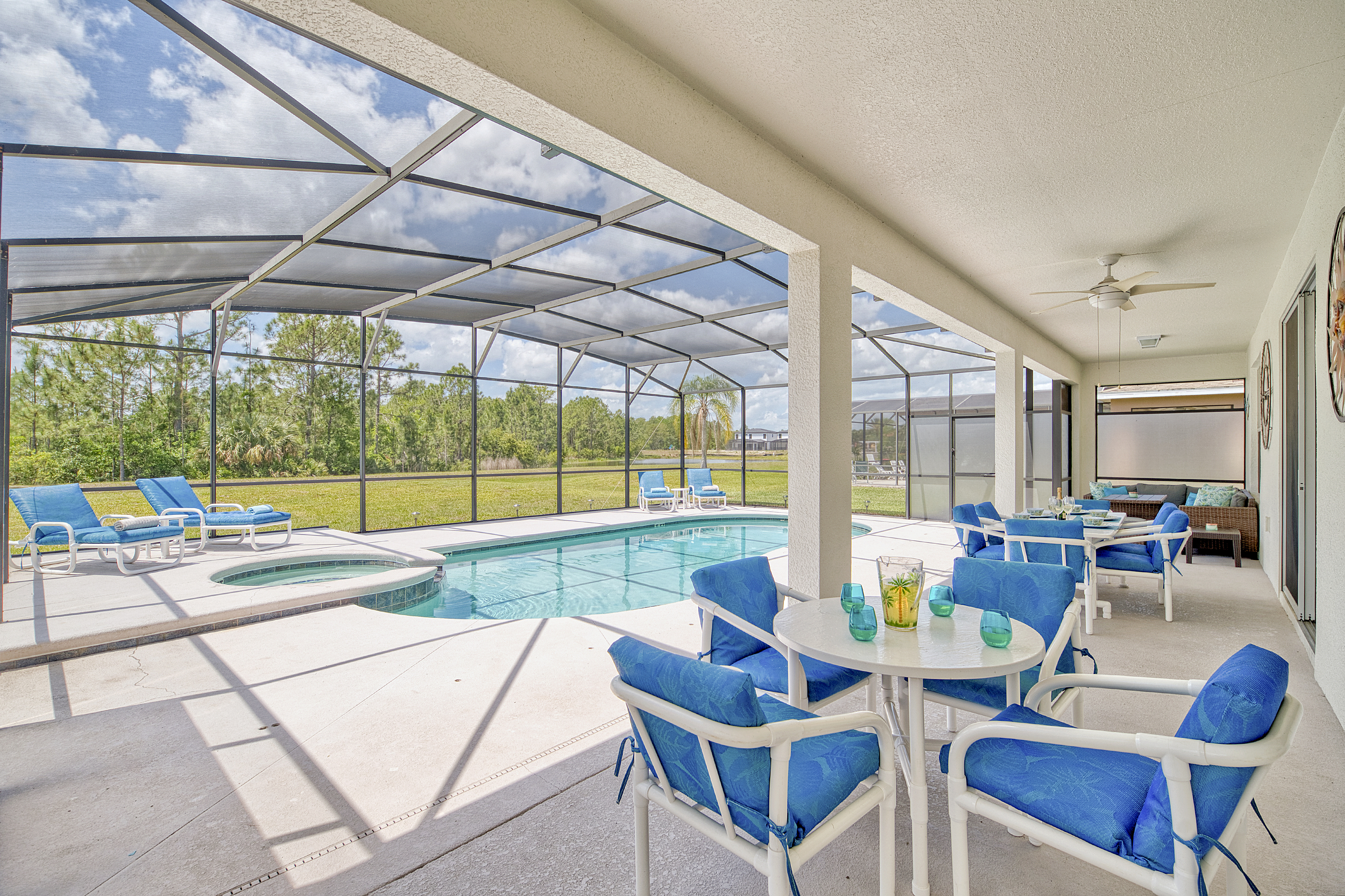 Discover the charm of Watersong Sunset Villa through these images which showcase its interiors, outdoor spaces and natural surroundings. Explore the tasteful décor of living areas, kitchen, and bedrooms. Imagine family fun or competitions in the games room and private pool – or simply relaxing in the spa and a nightcap whilst watching the sunset from the patio. The lush conservation areas and lake provide a serene backdrop. These images try to capture Watersong Sunset Villa’s essence—fun, luxury, and tranquillity.