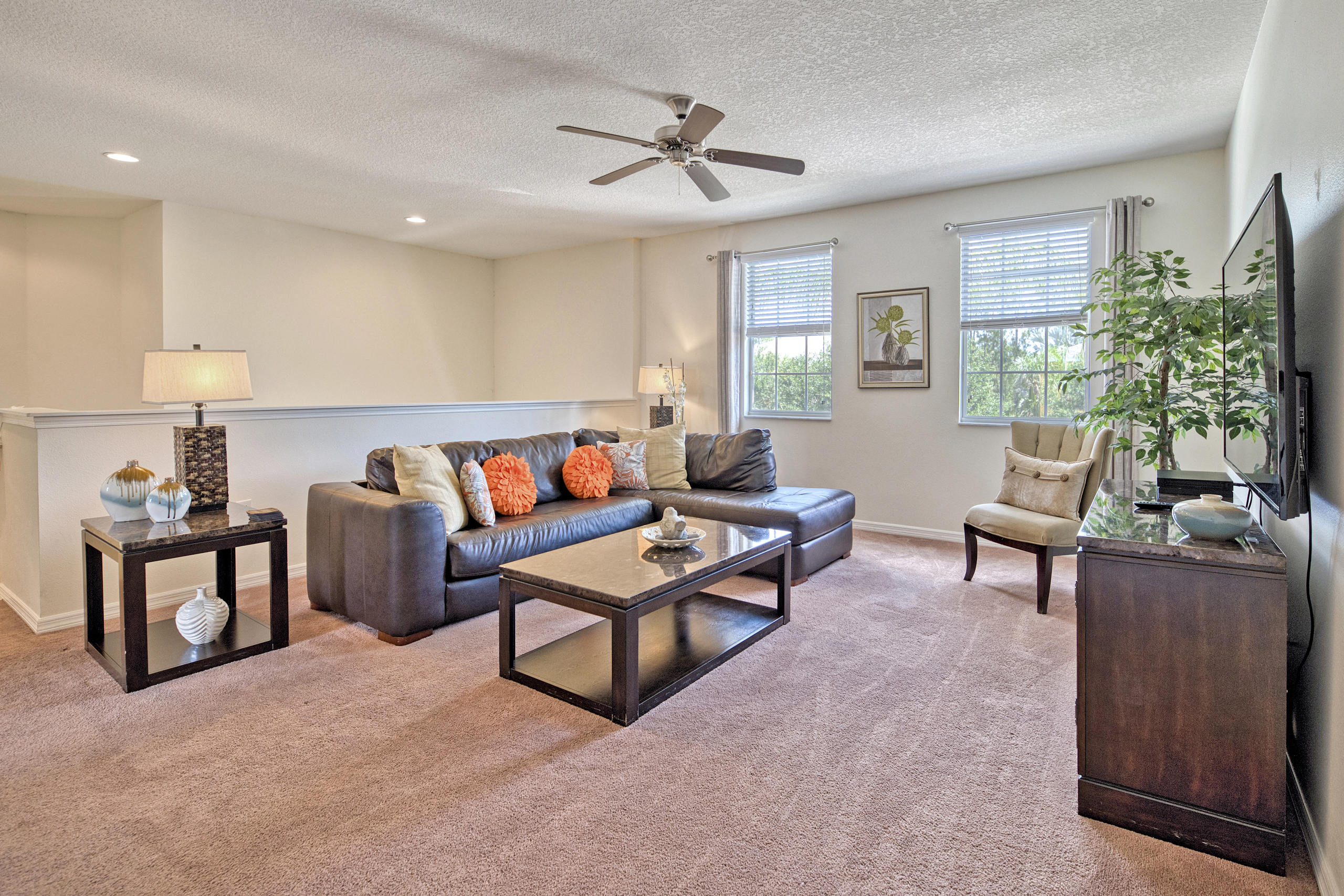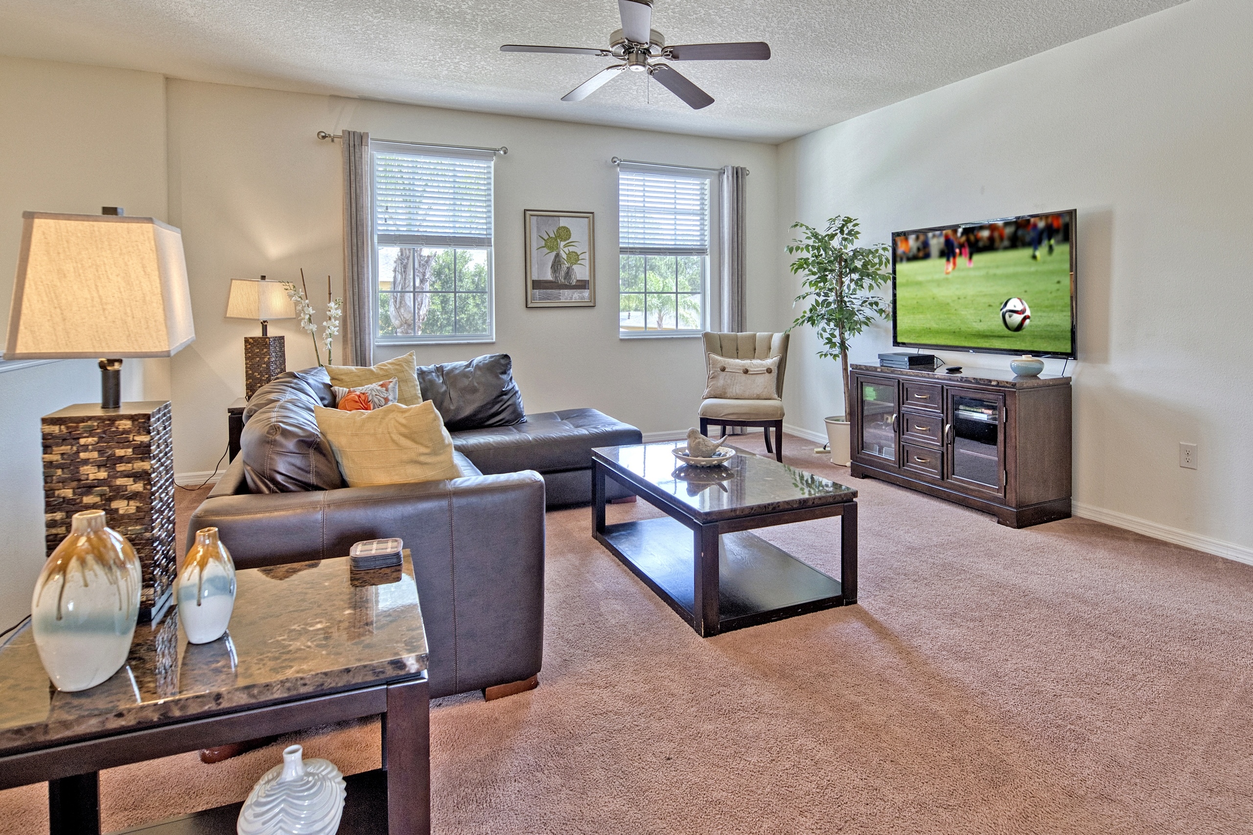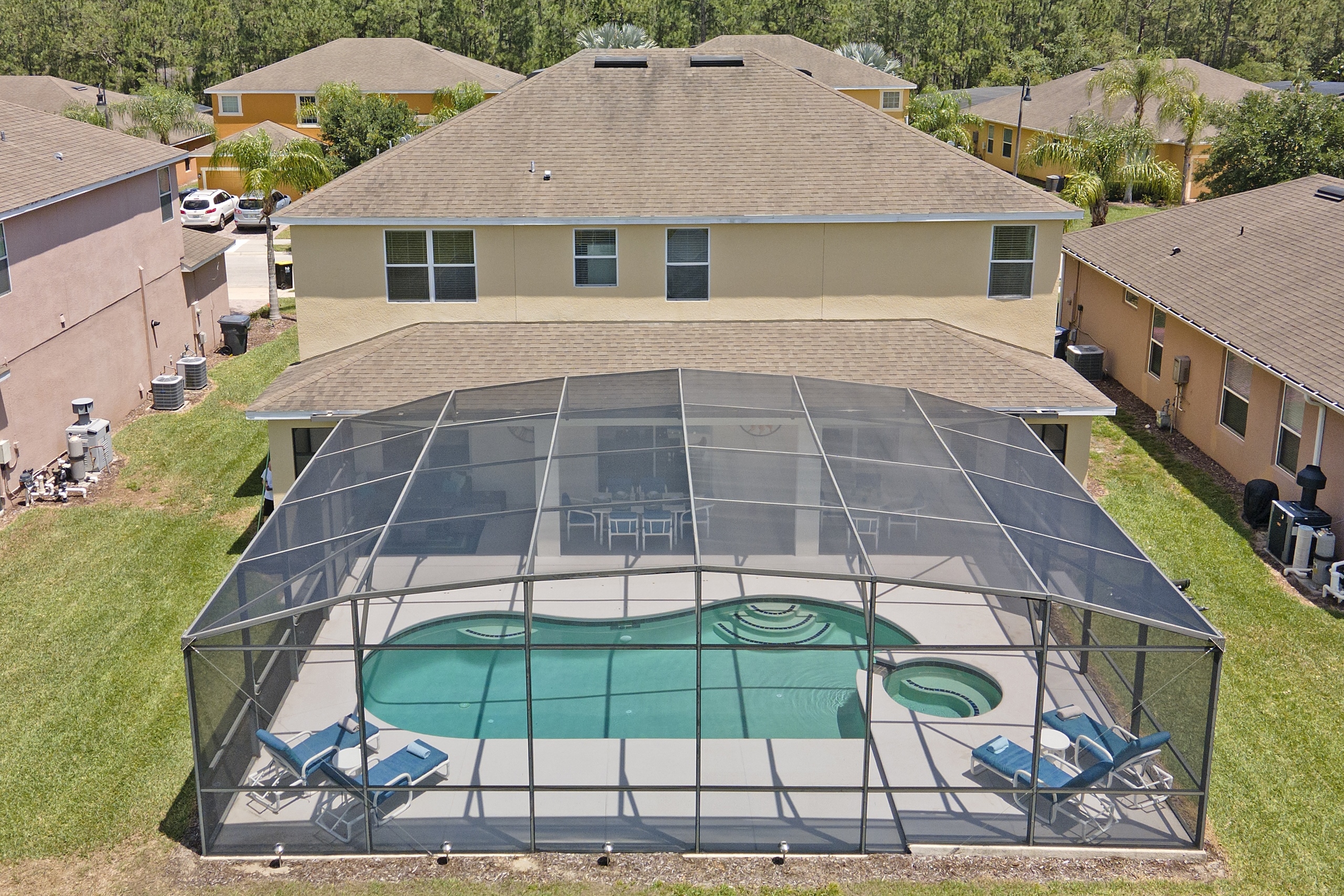 Discover the charm of Watersong Sunset Villa through these images which showcase its interiors, outdoor spaces and natural surroundings. Explore the tasteful décor of living areas, kitchen, and bedrooms. Imagine family fun or competitions in the games room and private pool – or simply relaxing in the spa and a nightcap whilst watching the sunset from the patio. The lush conservation areas and lake provide a serene backdrop. These images try to capture Watersong Sunset Villa’s essence—fun, luxury, and tranquillity.
